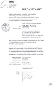 – magasból való lezuhanás elleni egyeni védőeszköz felszerelések felülvizsgálatában  kompetens személy